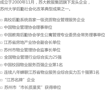 清潔與綠化養(yǎng)護(hù) 會(huì)務(wù)接待 秩序維護(hù) 設(shè)備維護(hù) 家政服務(wù) 學(xué)生公寓管理 餐飲服務(wù) FMS服務(wù) 咨詢(xún)顧問(wèn)服務(wù)